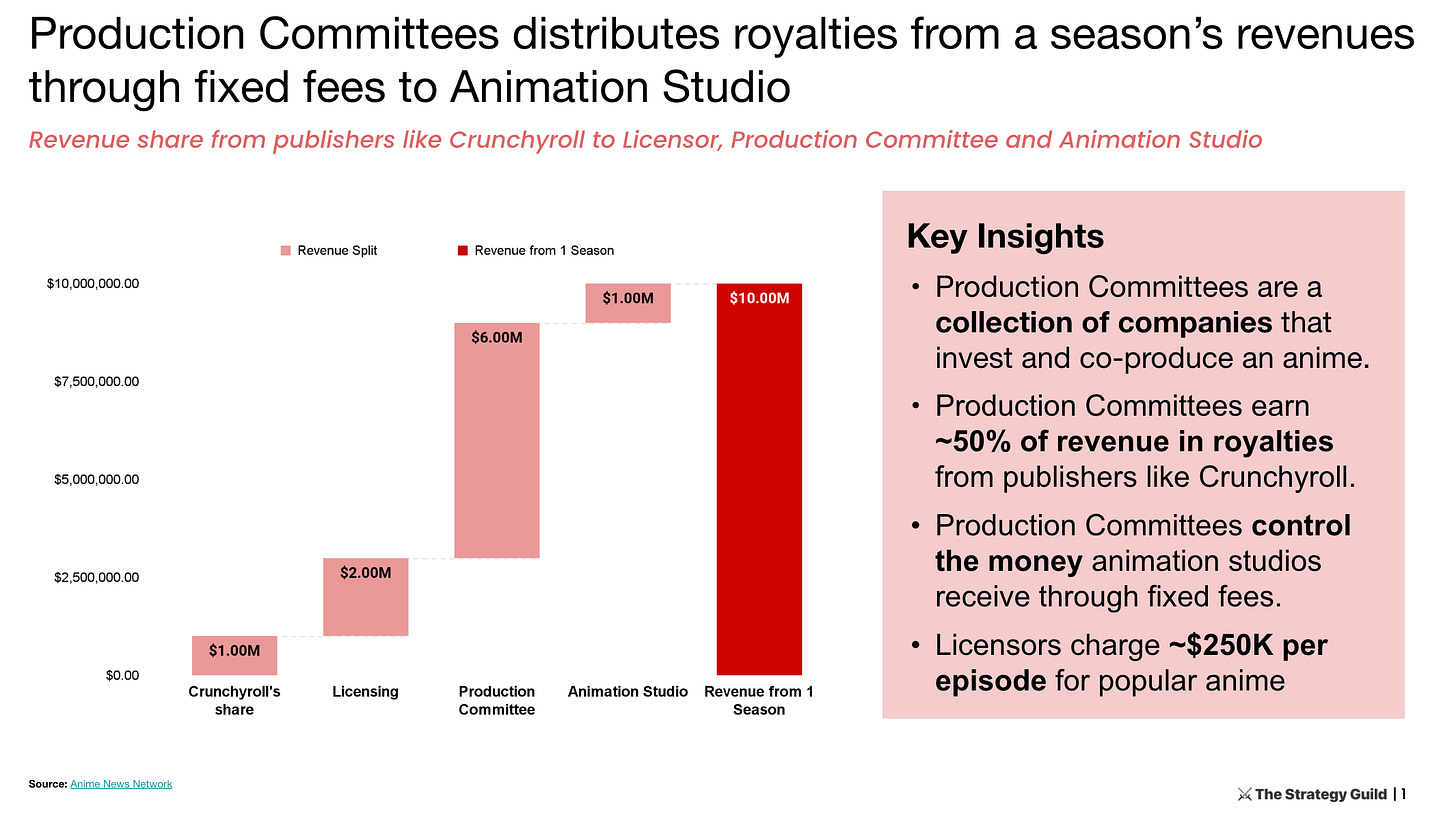 But as seen in the slide above, Production Committees keep an iron fist on the purse strings of animation studios.