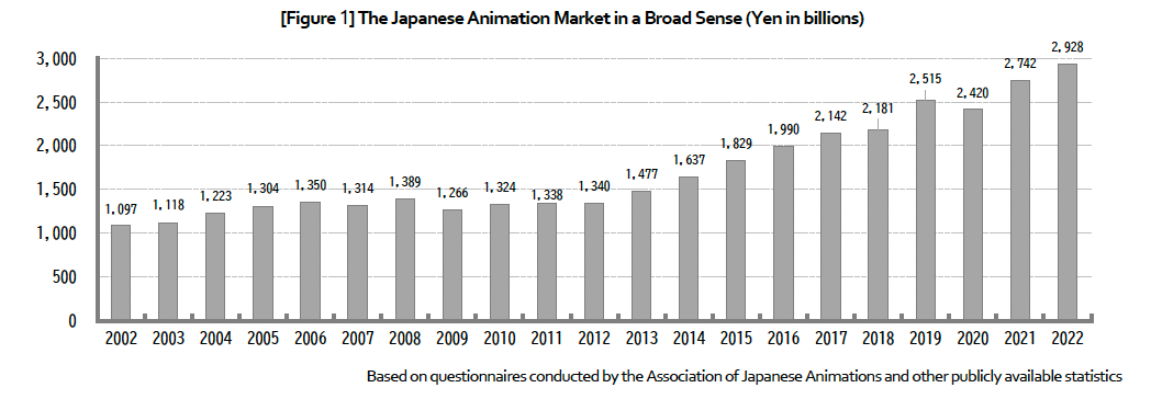 As of 2022, Anime is a ~$20 billion industry. Over 10 years, the industry grew by 198%. This growth has been driven by overseas expansion and internet distribution.