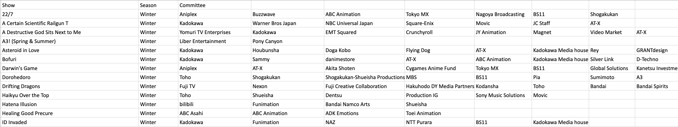 Production Committee - They are a collection of companies (e.g. comic publishers, toy makers, etc.) who pool their financial resources to co-invest and produce the show. They serve a risk management role, to protect studios in case the shows flop.