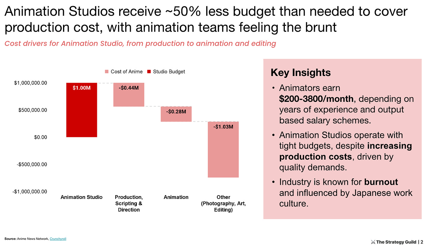 As a consequence of how this system is set up, animators in this industry are still known to barely afford rent and burn out in the process. It also creates pressure for delivering hits in the industry, with a VC-like mentality on delivering a portfolio of shows, hoping for one or two ‘unicorns’.